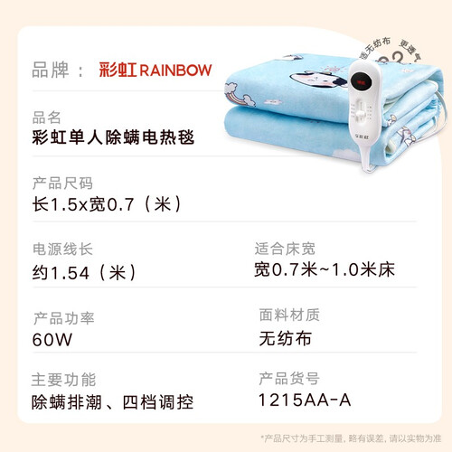 彩虹 低耗节能 电热毯