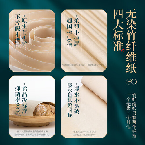 精选有机慈竹纤维,纸巾柔韧不易破,并且有效抑菌达98%以上,可代替面巾纸、卸妆纸、厨房纸使用。