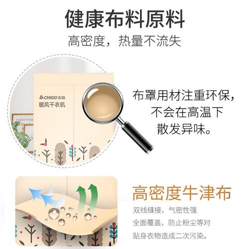 牛津布罩,防水耐磨耐用,延长使用寿命,大功率快速干衣,不用久等,可以满足换季衣物的各种不同需求。