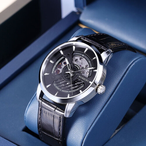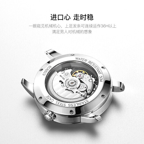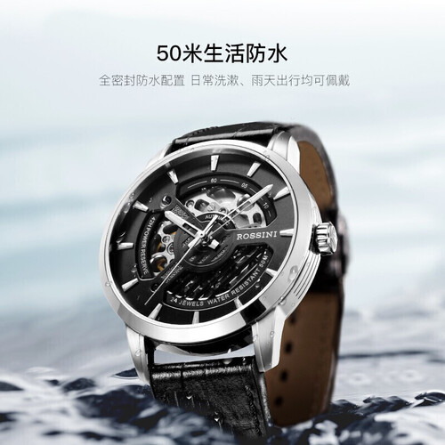 表盘机械镂空设计,可观察齿轮韵律之美。表带选用牛皮材质制作,柔软细腻,具有良好的耐磨性。