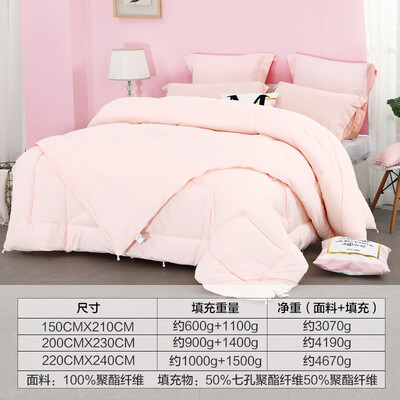 填充七孔纤维,具有出色的透气性能,可以保障被身的蓬松温暖,睡觉时更加舒爽,盖在身上后轻柔亲肤无压迫感。