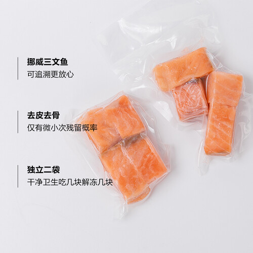 这款渔天下去皮去骨三文鱼切块,经全程冷链运输,去皮去刺取中段,鲜嫩好味道,营养又健康。