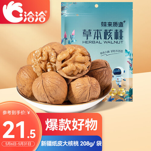 精选金银花,决明子等中草药配方进行蒸煮,不仅去除了核桃的苦涩,而且赋予了核桃清香自然的味道。核桃仁果形饱满,肉质香甜。