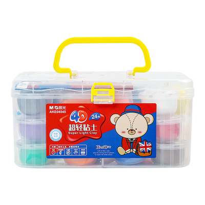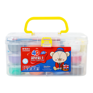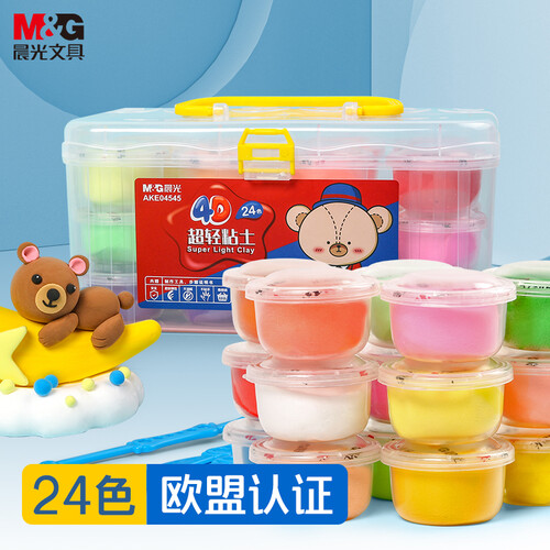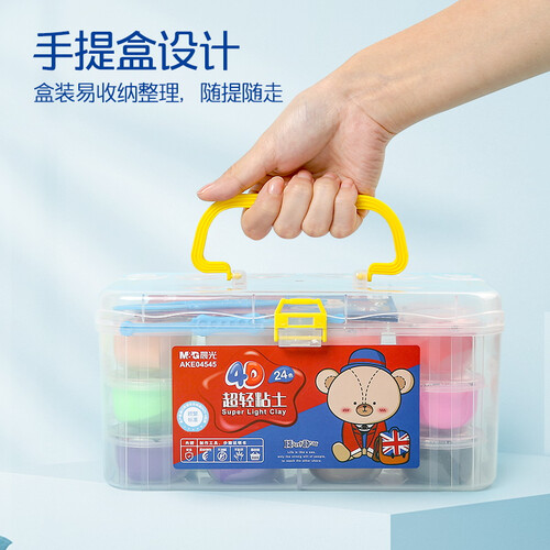 通过欧盟认证,可以放心让孩子玩耍。24色手提盒装设计,收纳轻松不占地,质地软硬适中,可塑性强,让孩子尽情发挥天马行空的想象力。