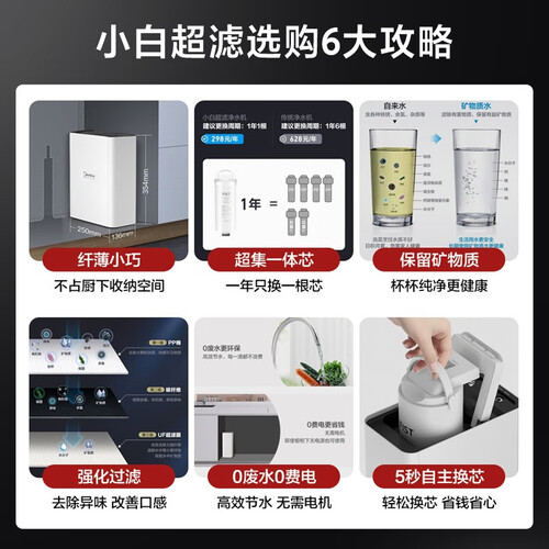 纤薄的身形设计,安装厨下不占据太大空间。配置二代水路板,漏水风险更小。内置超集一体芯,无需频繁更换滤芯,家人使用更省心。