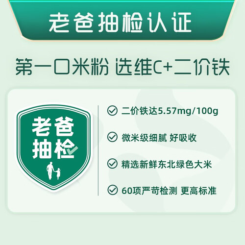 这款维C搭配二价铁的婴儿米粉,不仅含铁量高,吸收率更高。甄选东北绿色大米为原料,采用水磨浆工艺,微米级细腻,宝宝易消化。