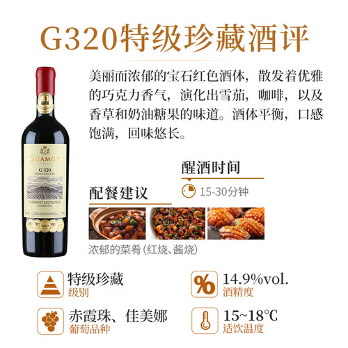 散发黑加仑、黑橄榄等丰富果香,细细品尝,犹如置身于百年庄园之中。搭配羊排饮用,更加衬托羊排的美味。