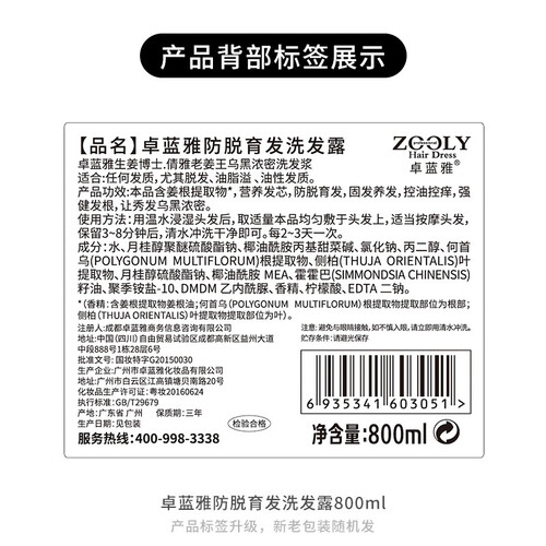 采用了无硅油的配方,不会对头皮发生造成刺激,敏感群体也能放心用。含有生姜姜汁的成分,强韧发根平衡水油。