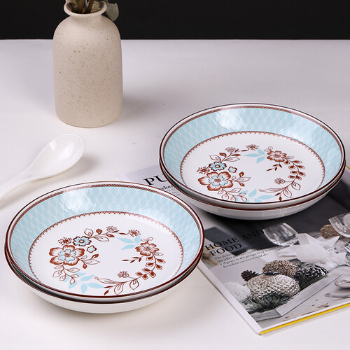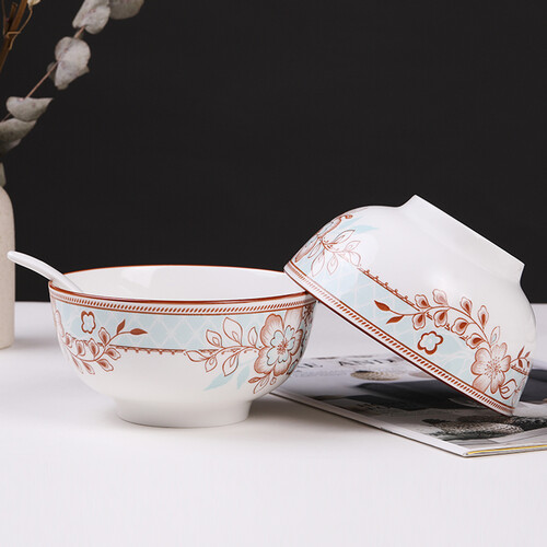 采用釉下彩工艺,让碗碟的花纹色彩更加明艳,且不易磨损变色。泥胚经过高温烧制,让餐具表面更加光滑,色泽更加饱满。