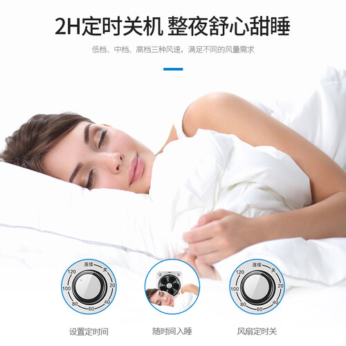 带有两小时的定时功能,无需担心忘记关闭的问题。外层的360度转页,让不能摇头的它传输凉意到各个角落。