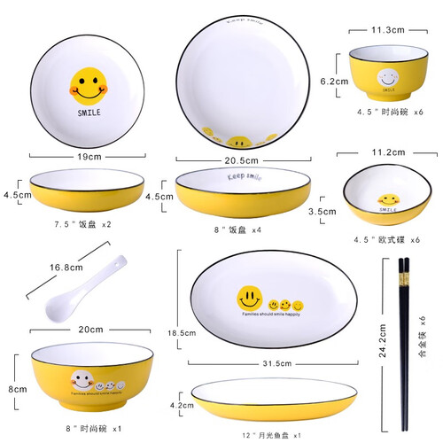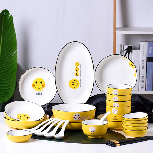 裕行 黄色笑脸餐具套装