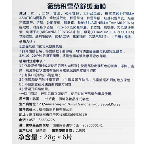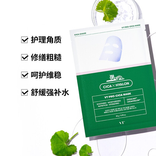 提取积雪草植物复合精华,舒缓的同时修缮肌肤,三重玻尿酸安抚肌底,让肌肤大口喝水。网格设计的膜布贴合脸型,牢牢锁住精华。
