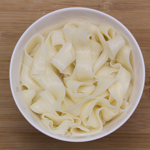 优选小麦磨制面粉制作,面粉粉质细腻,面条煮后色泽洁白,口感筋道。