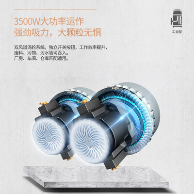 这款吸尘器采用了双风道涡轮系统设计而成,独立开关按钮,工作效率提升,同时它可干湿两用,让我们省心省力。
