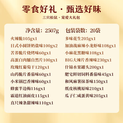 含有多种不同美味零食的大礼包,内含坚果、辣条、罐头等,让你可以品尝到多种美味。样样美味,让人食指大开。