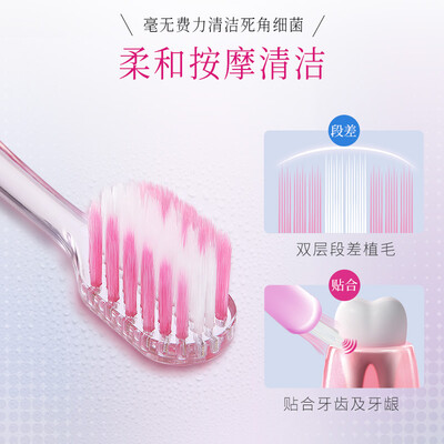 采用双层段差植毛,贴合弧形牙面,方便清洁你的每颗牙齿。粉嫩的颜色搭配,用高颜值俘获你的芳心,圈粉颜控一族。