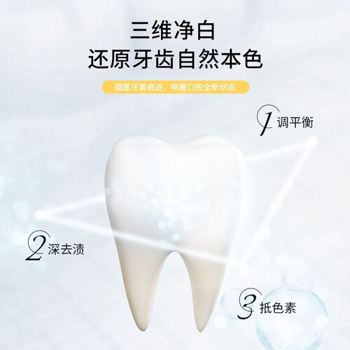 令人舒适愉悦的薄荷香味,给予口腔满满的清新自然感。配合小苏打成分,还可以深层洁白牙齿,维护牙周组织健康。