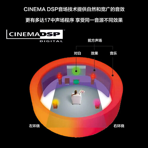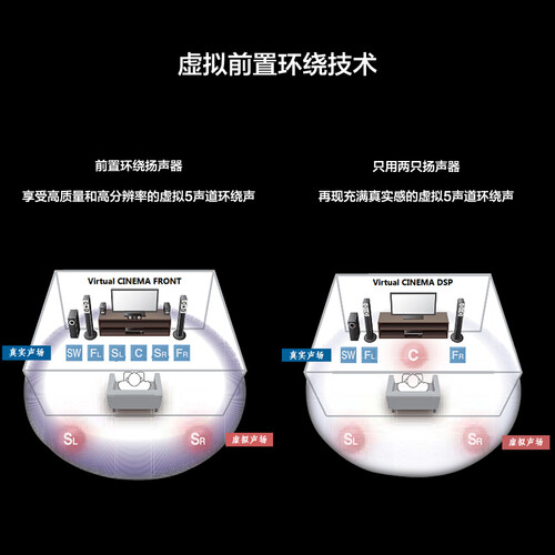 Bi-amp双线分音连接,提供分离式高频和低频输出。前置环绕扬声器,也能享受高质量和高分辨率的虚拟5声道环绕声。