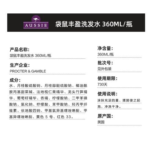 Aussie 丰盈蓬松 洗发水