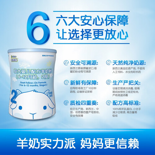 采用羊乳蛋白配方,不含牛乳成分,带来纯正的营养;全程冷藏运输,避免奶源被二次污染,宝宝食用口感好。