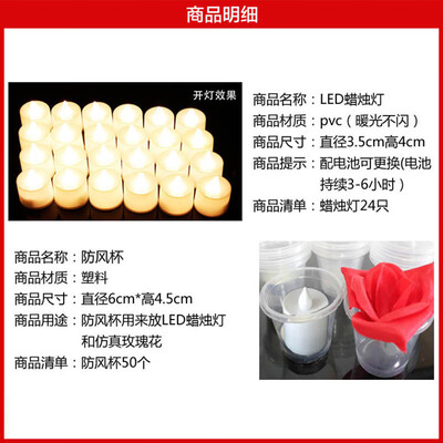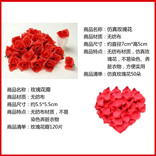 玫瑰花瓣采用无纺布材质,不易染色弄脏衣物,贴心又实用;设有LED蜡烛灯,灯光温和不刺眼,让房间更显浪漫唯美。