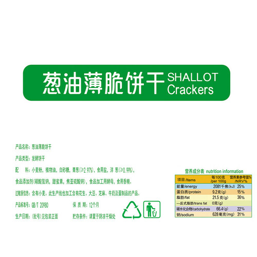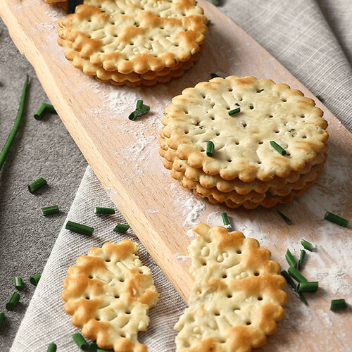 口味经典的葱油味饼干,清香香葱与松脆薄饼的结合,细细品尝更难忘。全程采用手工制作,充满匠人情怀,口感更显细腻。