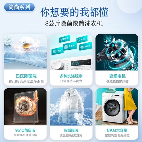 动力强劲的变频电机,轻松实现速洗。具备出色的洗涤性能,让衣物洁净如新。人性化的自清洁系统,避免衣物二次污染。