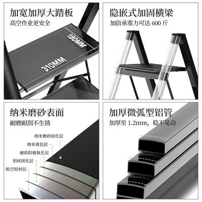 面板加宽约17.5cm,双脚踩踏有安全感,不踏空不会有凹陷感。梯身轻量化设计,轻巧便携,搬运轻松省力。