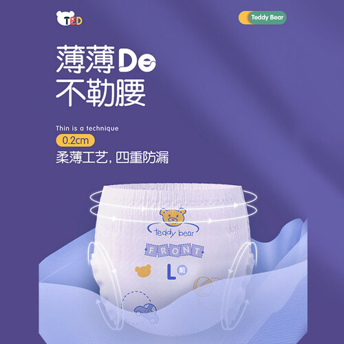 腰围弹力大,宝宝穿着贴合腰部和腹部,活动自如无束缚,安全不后漏。吸水快速不反渗,能够牢锁多次尿湿,宝宝护理更省心。