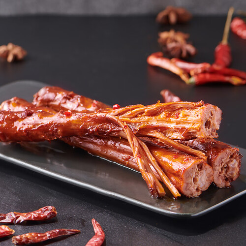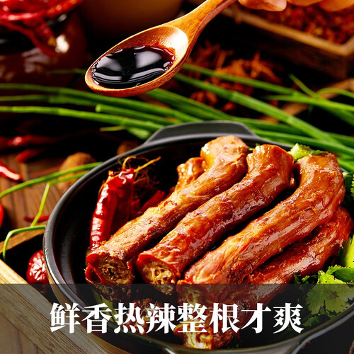 一整根鸭脖筋道耐啃,肉嫩而不柴,辣味较温和,只辣嘴巴不辣喉咙。