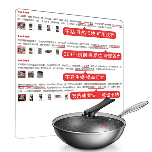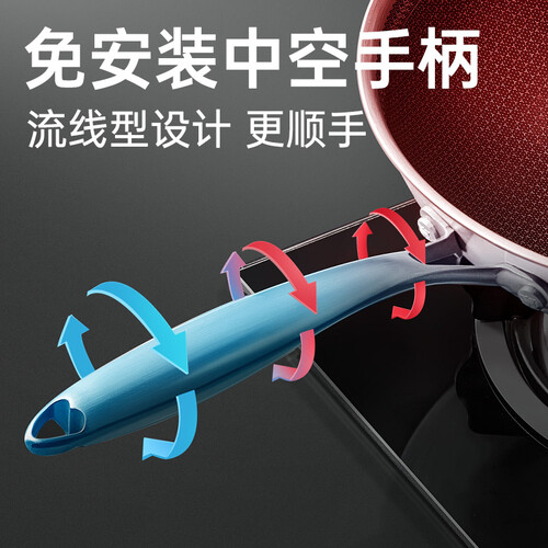 锅体采用99%的高密蜂窝纹,炒菜不会再出现粘锅的情况,清洁更方便。全钢中空手柄,持握舒适,坚固耐磨,使用更持久。
