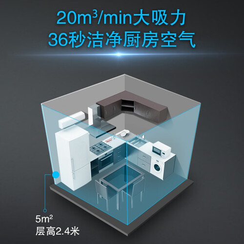 搭载无刷变频电机,动力澎湃,保持强劲稳定的风量,排烟更顺畅。低分贝设计,不易产生扰人噪音,家用更省心。