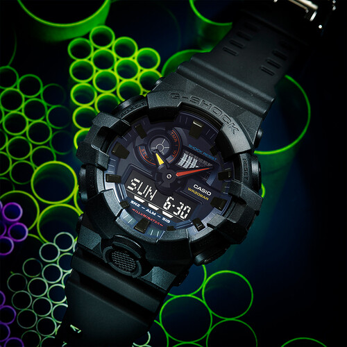 手表以霓虹灯元素为设计灵感,充分展现出当下流行的低调时尚。带有200米防水性能,可轻松满足日常生活中的防水需求。