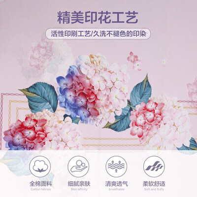 选用纯棉面料制作而成,亲肤温暖,舒适而又透气。精美绣球印花,与粉色床铺结合恰到好处,彰显品质感。