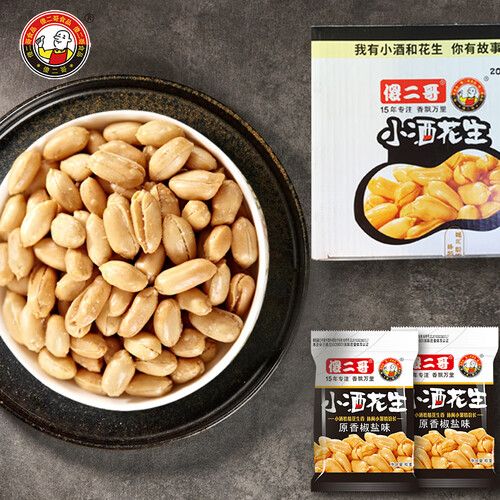 花生原料采自原产地山东落花生,加工配料均选天然食材。椒盐味花生,粒粒酥脆,个大饱满。休闲聚会,均可搭配。