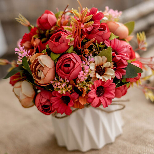 真实般的菊花绣球花苞,色彩斑斓,仿真度高,随便置于家中都是美丽景象,为居家生活增添活力。花苞可水洗防污,令花束持久如新。