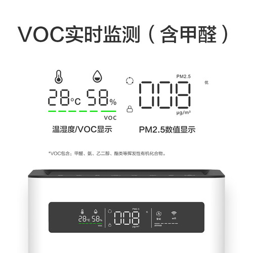 小巧的机身设计不占地,能够节省更多空间;丰富的功能为你带来健康净化的家居环境,智能综合显示更加方便贴心。