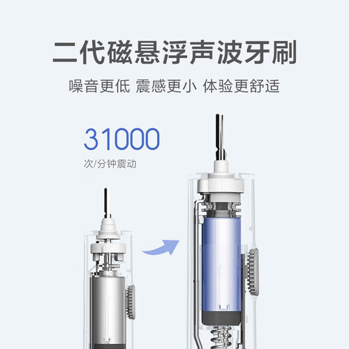 内置高频震动磁悬浮马达,具备智能过压提醒功能,不伤牙龈。10°稳定摆幅设计,可深度清洁口腔盲区。