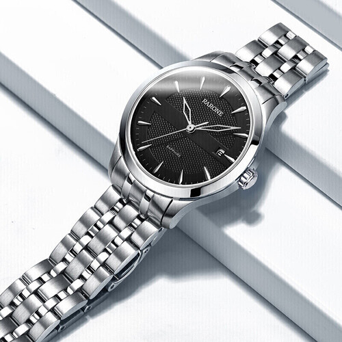手表舍弃多余繁复的设计元素,外观简约大气又不失质感。316L精钢实心表带,亲肤低敏,佩戴腕间舒适自然无不适感。
