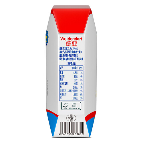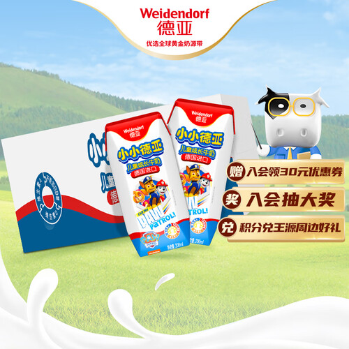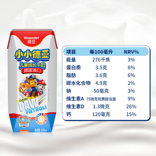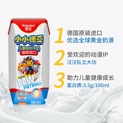 德亚牛奶由德国原装进口,经过工厂严格检验,确保品质。富含维生素A和D等多种营养元素,可帮助儿童健康成长。