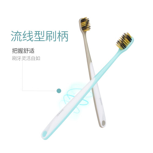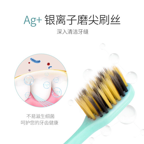 宽头设计的牙刷,增加植毛面积,精心呵护口腔健康。采用低吸水性的PBT刷毛,Ag+银离子磨尖刷丝,减少细菌滋生。