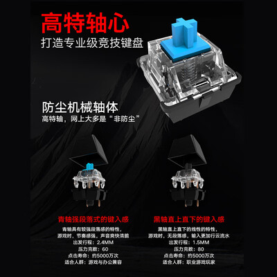 键盘采用机械青轴设计,二段式的段落感有着清脆的触感,体验效果佳。而且键盘经过5000万次敲击寿命,品质可靠。