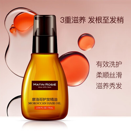 摩洛哥玫瑰护发精油,有效抚平毛燥,缓解发质分叉,从而减少静电,让秀发柔顺丝滑;清爽不油腻,令秀发水润柔亮。