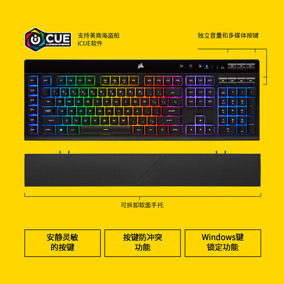 炫彩背光灯效处理,能够辅助清晰定位,满足夜间使用需求。光滑质地的键帽,操作手感更舒适,快速键入更轻松。