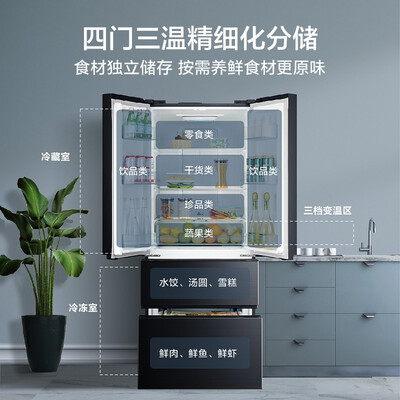 将莫兰迪灰色融入家电艺术之中,不俗套彰显高格调。法式四门三温区结构,食材独立精细储存,尽享各色原味。