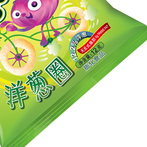 这款洋葱圈添加12.2%洋葱,浓浓的洋葱味,扑面而来,并且采用圆形圈的设计,更加与众不同,让你轻松畅享美味。