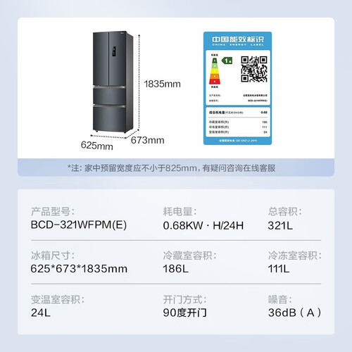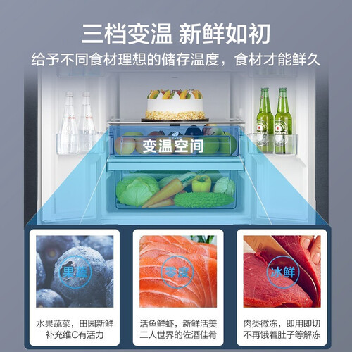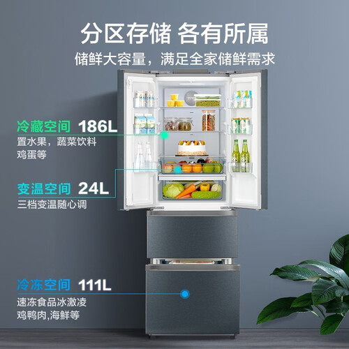 纤薄机身,节省小家空间;直角开门,轻松存取食材;321大容量,满足全家食物需求;三区分存储,食材各有所属,清新不串味。