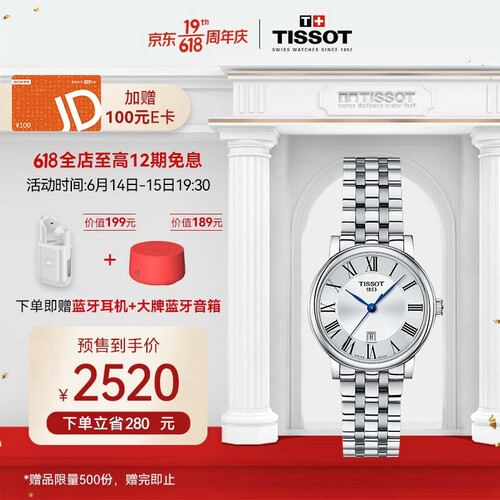 天梭 钢带石英瑞士手表