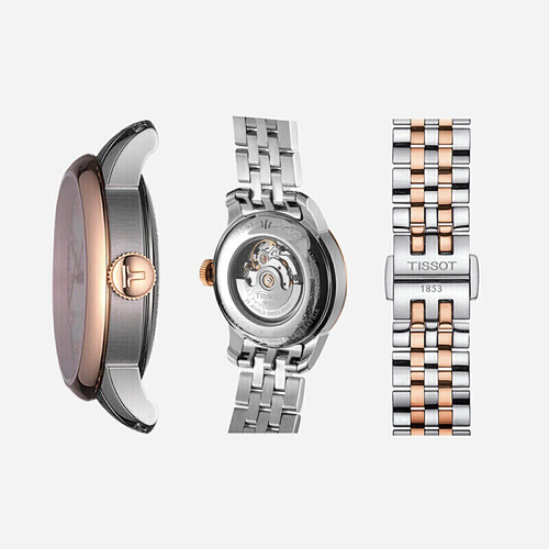 白色贝母表盘点缀有12颗美钻,熠熠生辉,质地通透,轻松诠释女性优雅魅力。背透底盘,清晰看到机芯运转之美。
