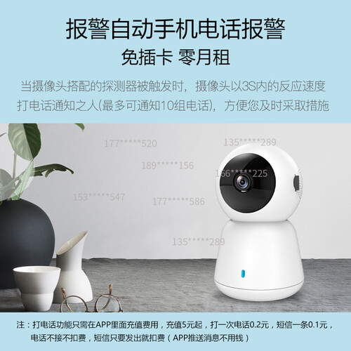 水平360度旋转设计,全面监控,不错过家里的每个角落。手机远程监控,出门在外也能24小时随时观看。